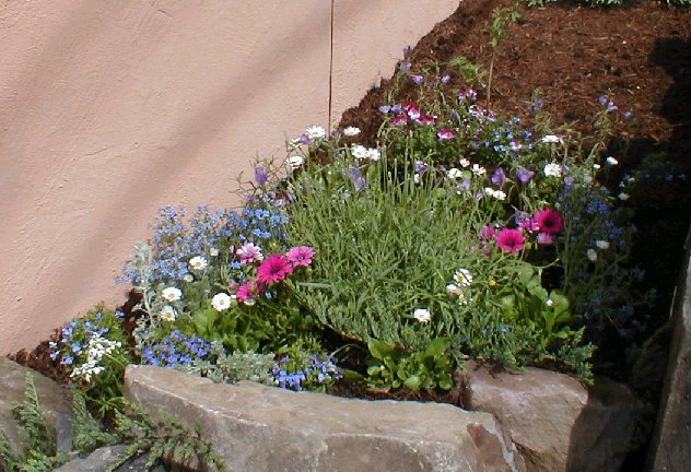 ラベンダーを中心にゴデチャ、ディモルフォセカ、デイジー等を植栽