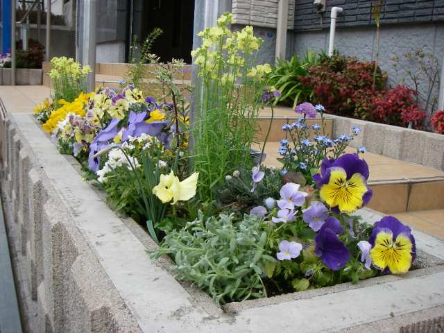 2月の植栽では、スカビオサ、ボロニア・ルーティア、スゥイートアリッサム等を追加。